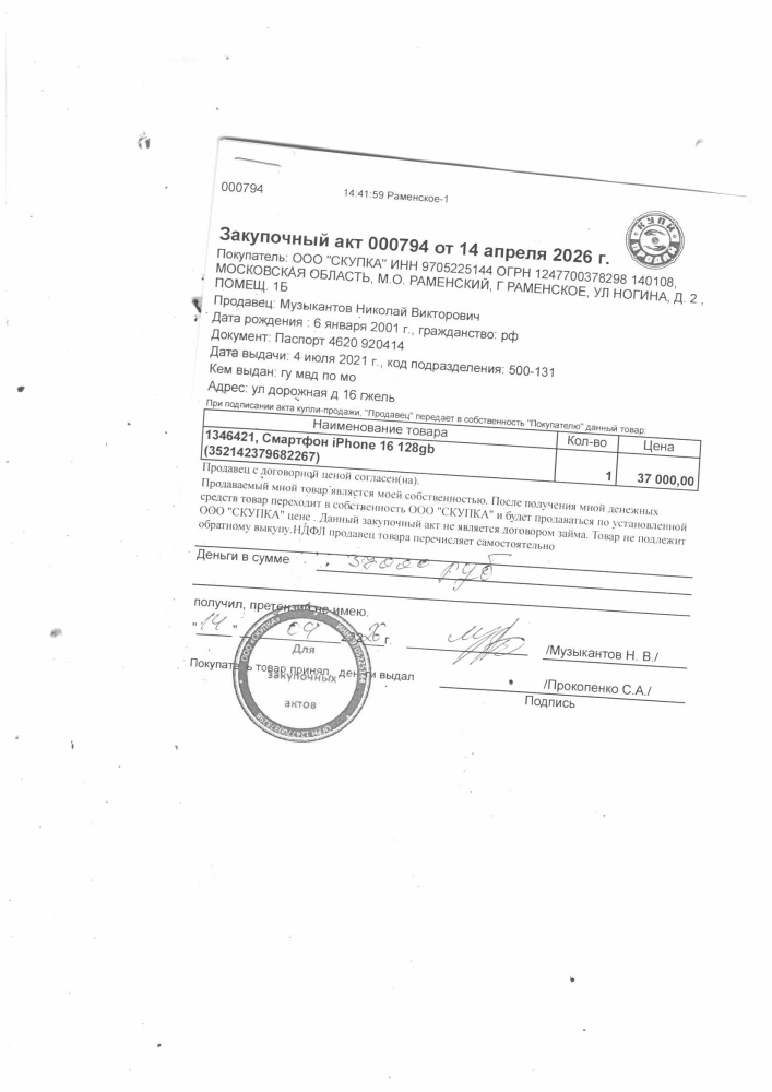 Смартфон iPhone 16 128gb